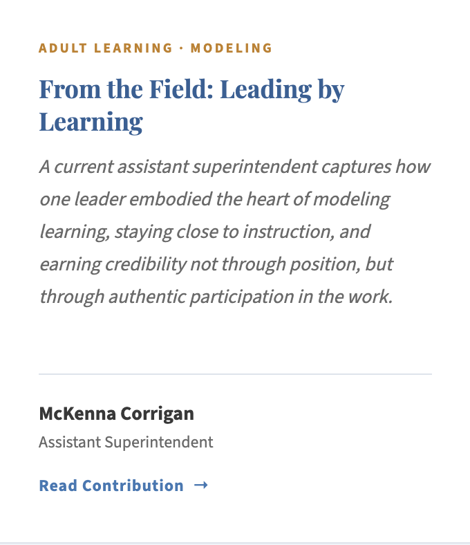 This community exists because the best ideas for improving schools are already in schools. If you have led work that improved instruction, developed your faculty, increased student achievement or shifted your school's culture — and you've reflected on it with clarity and honesty — we want to hear from you.